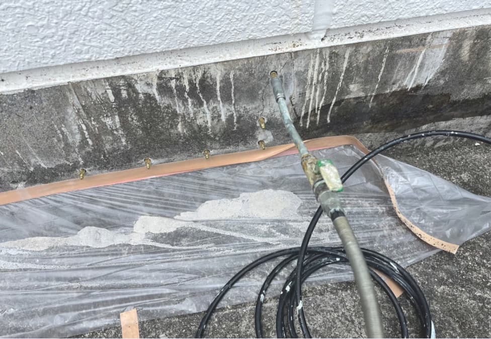 ひび割れや手摺付け根など、漏水の原因となる部分に止水材を注入して水の侵入を遮断。雨漏りや腐食を防ぎ、建物の耐久性と安心を長く保ちます。